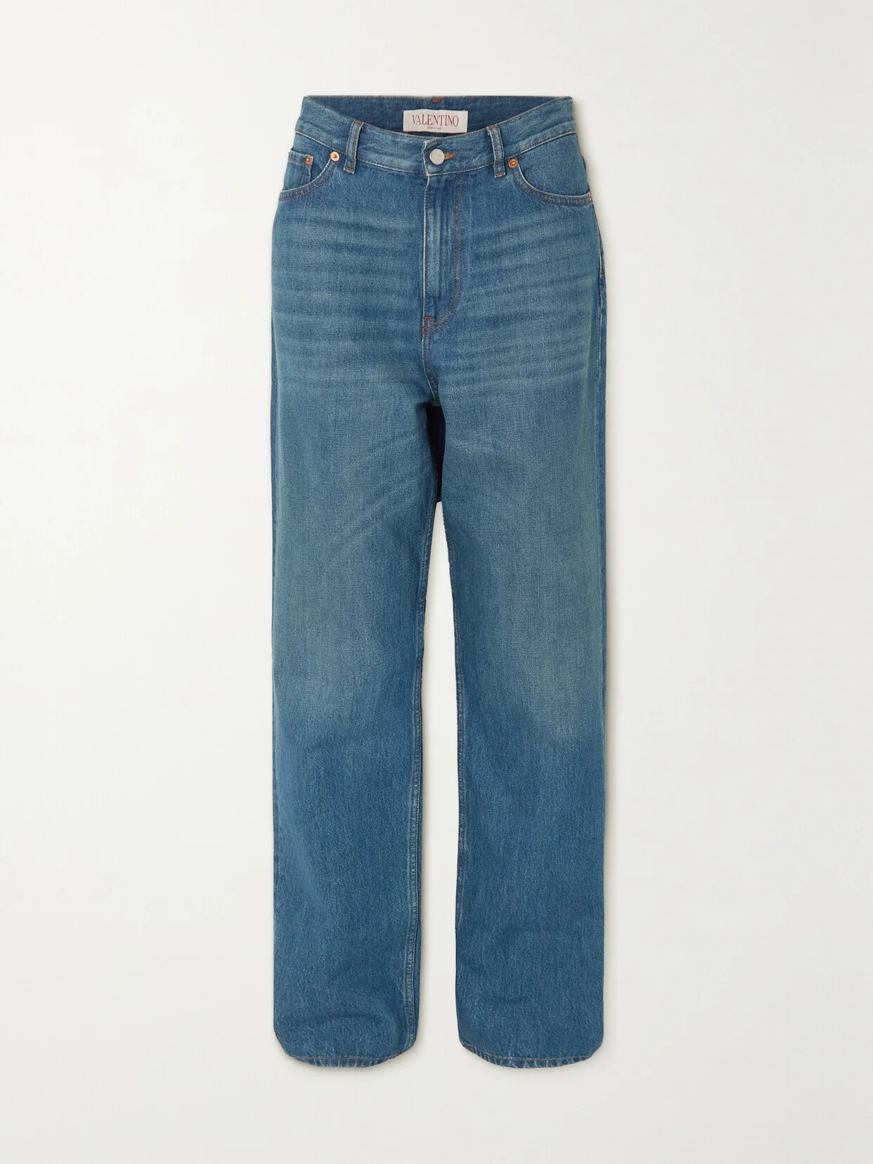 Valentino Garavani's jeans have been made in Italy from sturdy blue denim and are sure to hold their own in your wardrobe for countless seasons to come. They have a boyfriend silhouette with whiskered detailing and puddle into generous hems. Wear yours with a blouse from our edit.