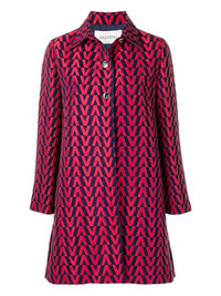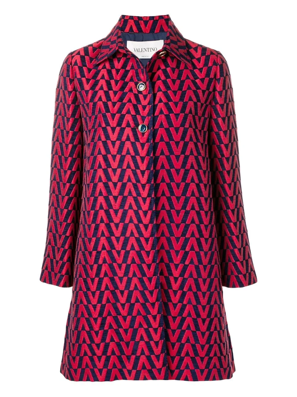 brocade single-breasted coat Highlights - Blue and red - Silk and linen blend - Crimson red - Front button fastening - Pointed flat collar - Two side slit pockets - Long sleeves Made in Italy Composition Lining: Silk 100% Outer: Acrylic 56%, Linen/Flax 34%, Polyamide 10%
