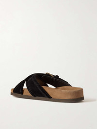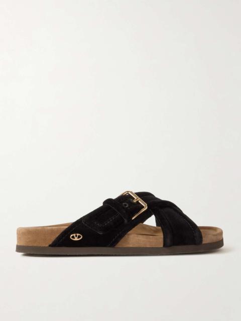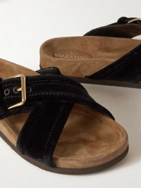 EDITORS'NOTES Valentino Garavani's slides have been crafted in Italy from plush velvet. The crisscross straps are buckled, allowing you to adjust them for a customized fit, while the molded footbeds offer cushioned support. SIZE & FIT - Fits true to size, take your normal size - Italian sizing DETAILS & CARE - Slight heel - Black velvet - Slip on
