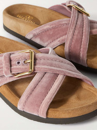 EDITORS'NOTES Valentino Garavani's slides have been crafted in Italy from plush velvet. The crisscross straps are buckled, allowing you to adjust them for a customized fit, while the molded footbeds offer cushioned support. SIZE & FIT - Fits true to size, take your normal size - Italian sizing DETAILS & CARE - Slight heel - Blush velvet - Slip on