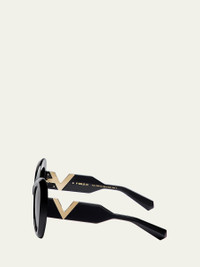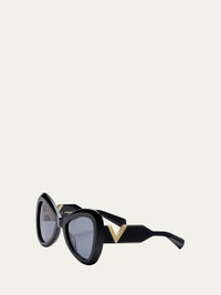 Valentino Garavani butterfly sunglasses in acetate Lens/bridge/temple (in mm): 53-22-140 Solid-color lenses Signature V cutout on temples Wide, tapered arms 100% UVA/UVB protection Made in Japan Proposition 65 warning for California residents Online Inquiries: BGS21_D53WA| Store Inquiries: #4948113
