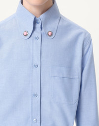 Long-Sleeved Cotton Shirt - Daisy jewel button detail on collar - Front fastening with concealed buttons - Cotton (100% Cotton) - Unlined - Length: 74 cm / 29.1 in. from the shoulders in an Italian size 40 - Sleeve length: 83 cm / 32.7 in. from the center back in an Italian size 40 - The model is 176 cm / 5'9" tall and wears an Italian size 40 - Made in Italy The look of the model is completed by a Valentino Garavani Vain Bag and Valentino Garavani Bowow Shoes. Product code: 6B3AB78193R_QNX