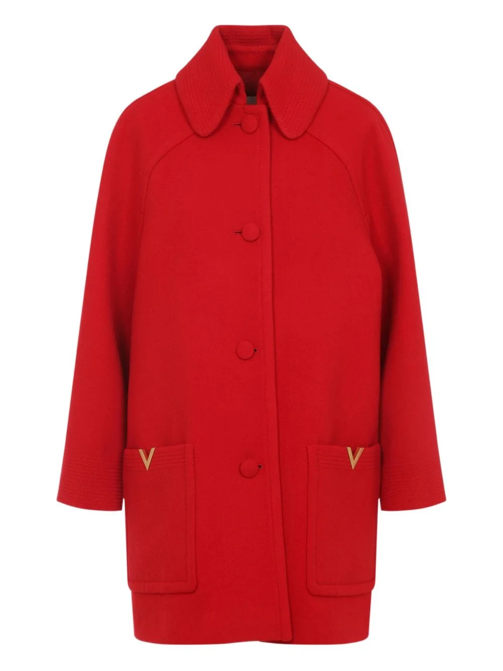 button-fastening wool coat Highlights - Red - Button fastening - Round collar - Front pockets - Gold-tone logo applique Made in Italy Composition Virgin Wool 100% Washing instructions Read Manufacturer Guidelines