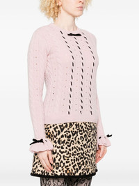 cable-knit ribbon-trimmed sweater Highlights - Pink - Cable knit - Ribbon detail - Ruffled cuffs - Bow embellishment - Round neck Made in Italy Composition Wool 100% SIZE & FIT Model measurements Height 5 ft 9 in(1.75 m) Bust/Chest 34.64 in(88 cm) Hips 36.61 in(93 cm) Waist 26.37 in(67 cm) Washing instructions Read Manufacturer Guidelines