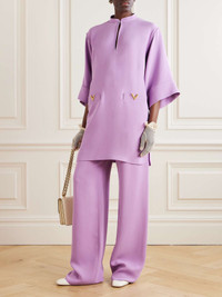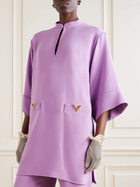 EDITORS'NOTES Valentino Garavani’s mini dress channels elegant ‘60s styles. It’s made for a loose fit from silk-cady and has wide sleeves and gold-tone ‘VLOGO’ embellishments at the pockets. Wear yours with slingback pumps. SIZE & FIT Model measurements: - Fits true to size, take your normal size - Designed for a loose fit - Lightweight, non-stretchy fabric - Model is 177cm/ 5'10" and is wearing an IT 40 - Bust: 79cm/ 31" - Waist: 61cm/ 24" - Hip: 89cm/ 35" DETAILS & CARE - Light-purple silk-cady - Hook-fastening keyhole at front - 100% silk - Dry clean