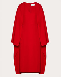 Cady Couture Dress - V-neck - Cape sleeves - Front slit - Concealed rear zipper and hook-and-eye fastening - Length 123 cm / 48.4 in. - Cady Couture (100% Silk) - Stretch georgette skirt lining (91% Viscose; 9% Elastane) - The model is 5'9" tall and wears an Italian size 40 - Made in Italy
