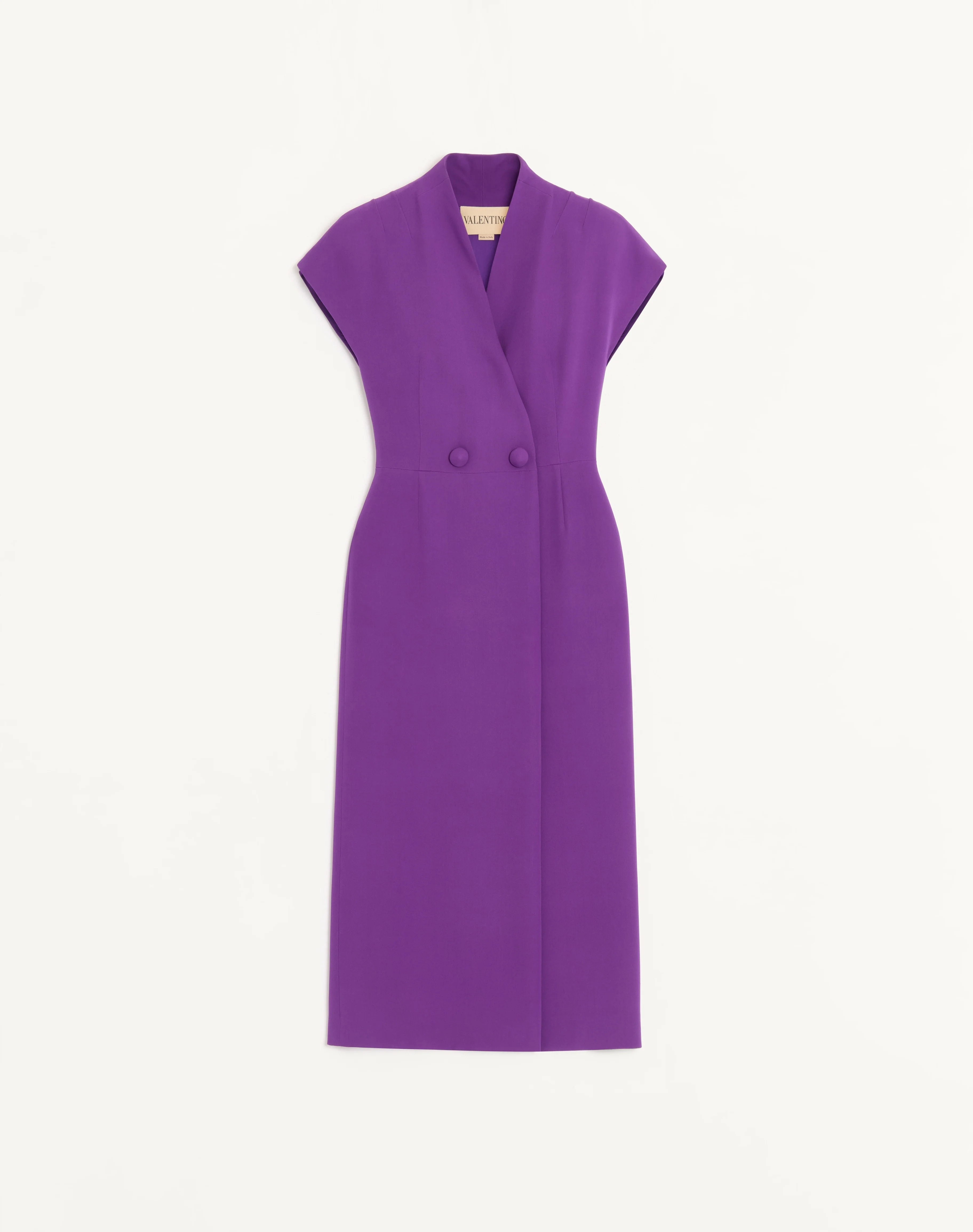 Cady Couture wrap dress - Front closure with buttons covered in crepe satin - Cady Couture (100% Silk) - Georgette Stretch Viscose lining (91% Viscose, 9% Elastane) - Length: 125 cm / 49.2 in. from the shoulders in an Italian size 40 - The model is 176 cm / 5'9" tall and wears an Italian size 40 - Made in Italy Product code: 8B0VAK811MM_R1B