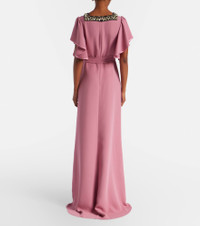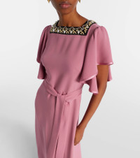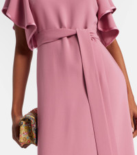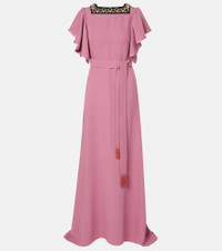 Made from swathes of pure silk, Valentino's signature Cady Couture lends fluidity to each style. This striking gown features elegant flutter sleeves, an embellished neckline, and fringed self-tie waist belt. Product Details - Material: 100% silk - Care instructions: dry clean - Made in Italy - Color: pink - Designer color name: Sandy RoseNero - Item color: pink - Material II: 100% viscose - Material III: 100% silk - Material IV: 100% silk - Embroidery: 100% polyester - Trim: 100% viscose - Details: 100% silk - Closure: concealed zipped back - Self-tie belt - Item number: P01108318 Size & Fit - Fits small to size - we recommend trying one size larger - Cinched waist - Non-stretchy fabric - The model seen in the picture is 178cm-5'10" and wearing a size IT 38