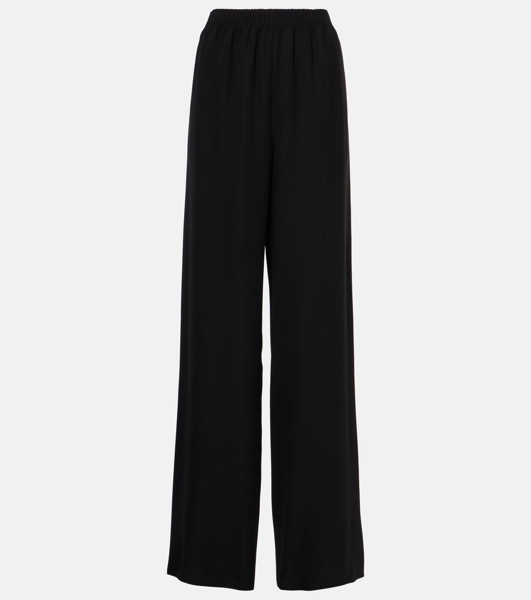 Product Details - Material: 100% silk - Care instructions: dry clean - Made in Italy - Designer color name: Nero - Pockets: side slit pockets - Item number: P01006691 Size & Fit - True to size - Elasticated waist - Non-stretchy fabric - Wide-leg - Unhemmed for tailoring - The model seen in the picture is 178cm-5'10" and wearing a size IT 40