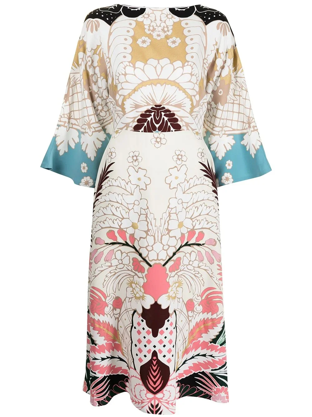 Cady printed dress The perfect summer dress doesn't exist...Well, think again. Valentino Garavani puts the sunshine in summertime with this flowy floral print design. Finally. Highlights - Valentino ready to wear - Cream/multicolour - Silk - Abstract pattern print - Round neck - Kimono-style sleeves - Flared - Concealed rear zip fastening - Mid-calf length Made in Italy Composition Silk 100% SIZE & FIT Model measurements Height 5 ft 9 in(1.76 m) Bust/Chest 29.13 in(74 cm) Hips 33.07 in(84 cm) Waist 22.83 in(58 cm) Measurement SLEEVE LENGTH 13.38 in(34 cm) LENGTH 46.85 in(119 cm) WAIST 39.37 in(100 cm) BUST 29.92 in(76 cm) FittingInformation This piece fits true to size. We recommend you get your regular size Designed for a close fit at the bust and waist, but loose at the hip Made with a lightweight non-stretch fabric Washing instructions Read Manufacturer Guidelines