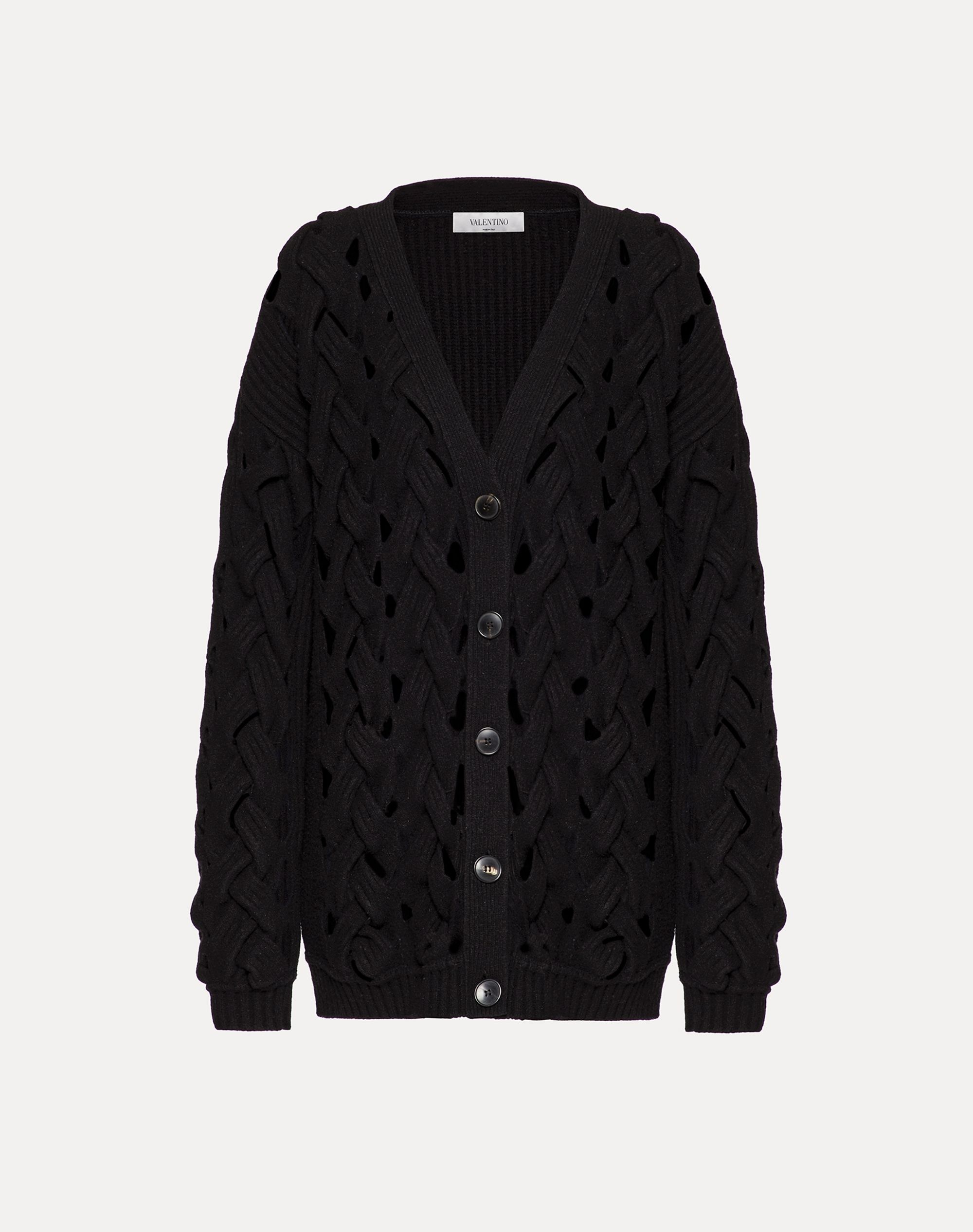 Cardigan in Angora Wool Polyamide. - Braid detailing on the front - Half-moon yoke and micro stud on the back - Front button fastening - Angora Wool Polyamide (57% Wool, 25% Angora Wool, 17% Polyamide, 1% Elastane) - Unlined - Length from shoulders: 80 cm / 31.5 in. for Italian size S - The model is 176 cm / 5’9” tall and wears an Italian size S - Made in Italy Product Code: WB0KA02Q6QA0NO