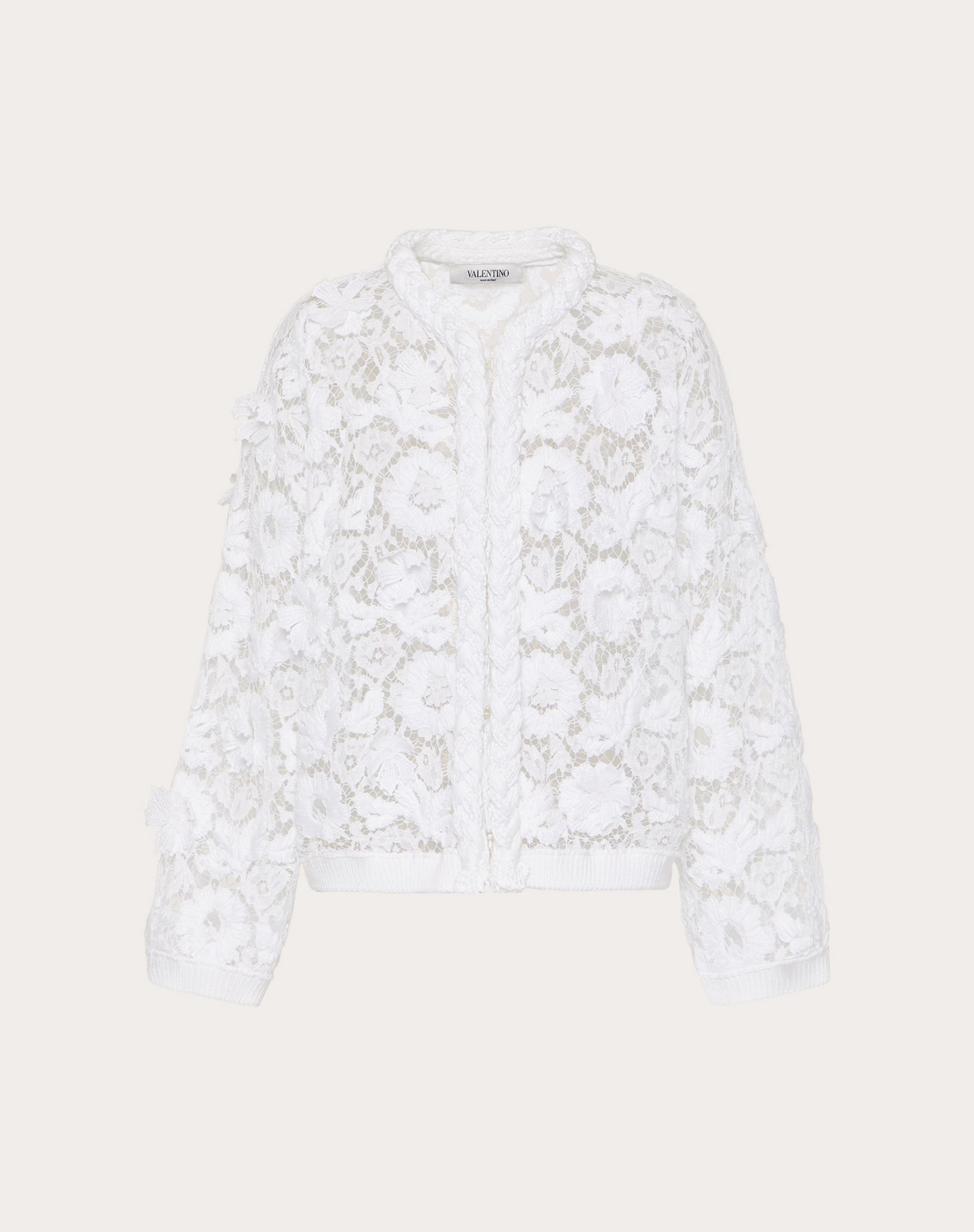 Cardigan in Cotton and Lace with flower embroidery. - Lace flower embroidery - Woven trim - Front fastening - Cotton (100% cotton) - Unlined - Length from shoulders: 58 cm / 22.8 in. for Italian size S - The model is 5’9” tall and wears an Italian size S - Made in Italy Product Code: VB3KE00M6920BO