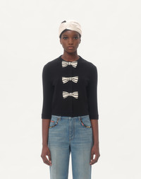 Cardigan with embroidered bow detail - Front closure with buttons - Virgin wool (100% virgin wool) - Length: 49 cm / 19.2 from the shoulders in an Italian size S - The model is 176 cm / 5'9" tall and wears an Italian size S - Made in Italy Product code: 6B0KA11J9DL_0NO