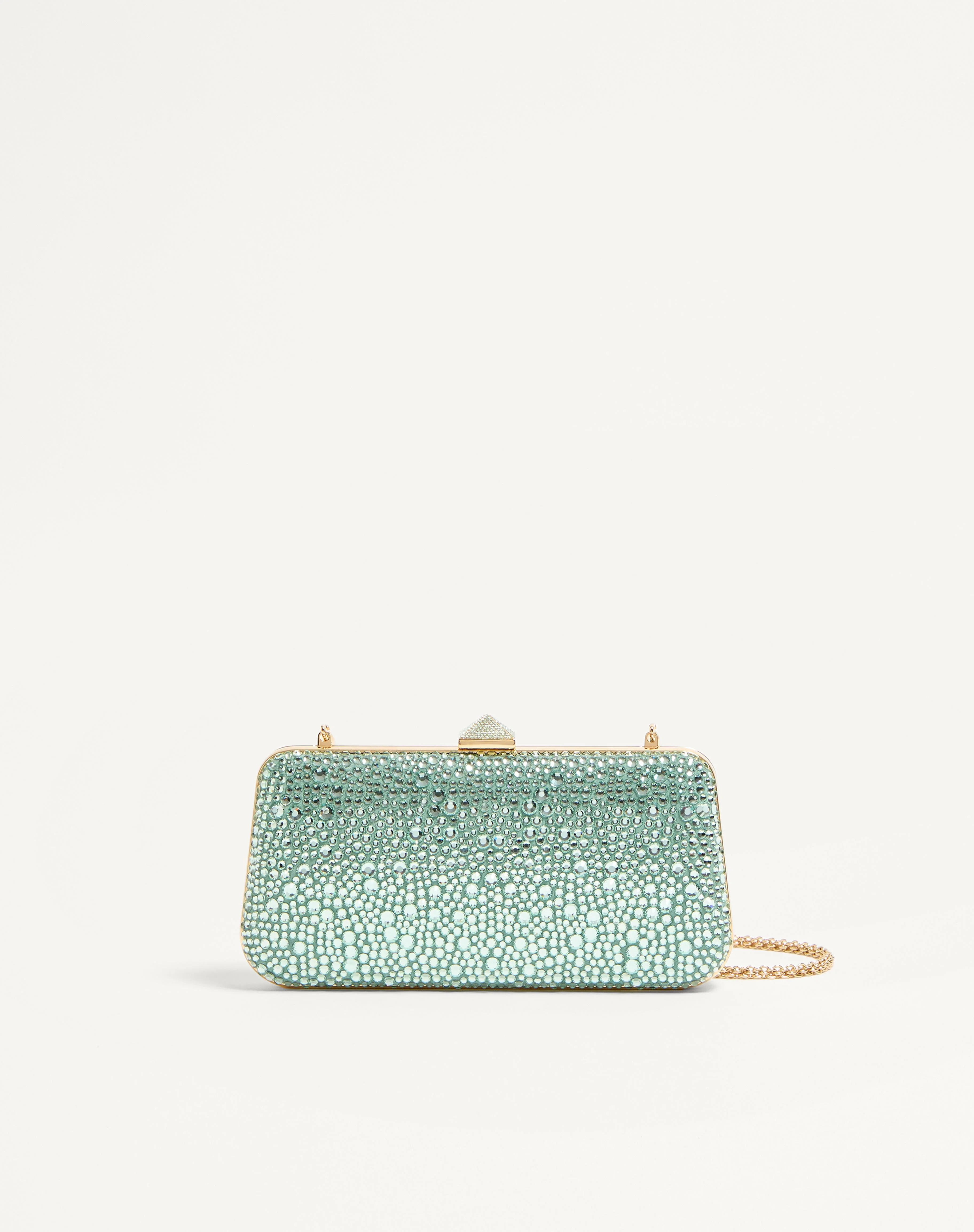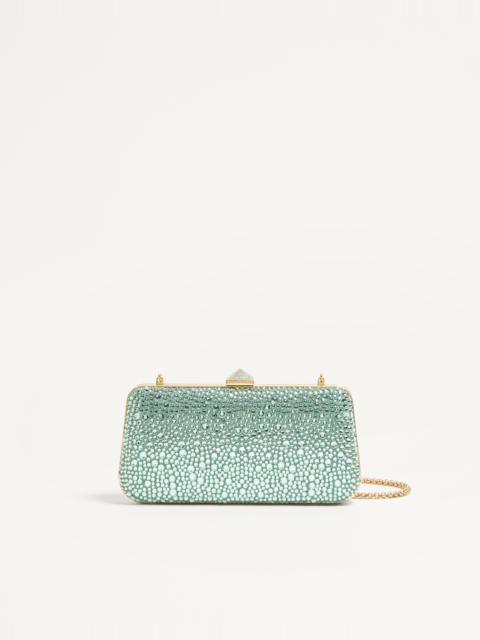 Valentino Garavani Carry Secrets minaudiere with rhinestone applique and rhinestone-covered stud fastening element. Gold-finish hardware - Nappa leather lining - Removable chain shoulder strap - Shoulder strap drop length: 51 cm / 20.1 in. - Dimensions: W21xH10xD4 cm / W8.3xH3.9xD1.6 in. - Made in Italy Product code: 6W2B0L01SNM_R5N