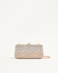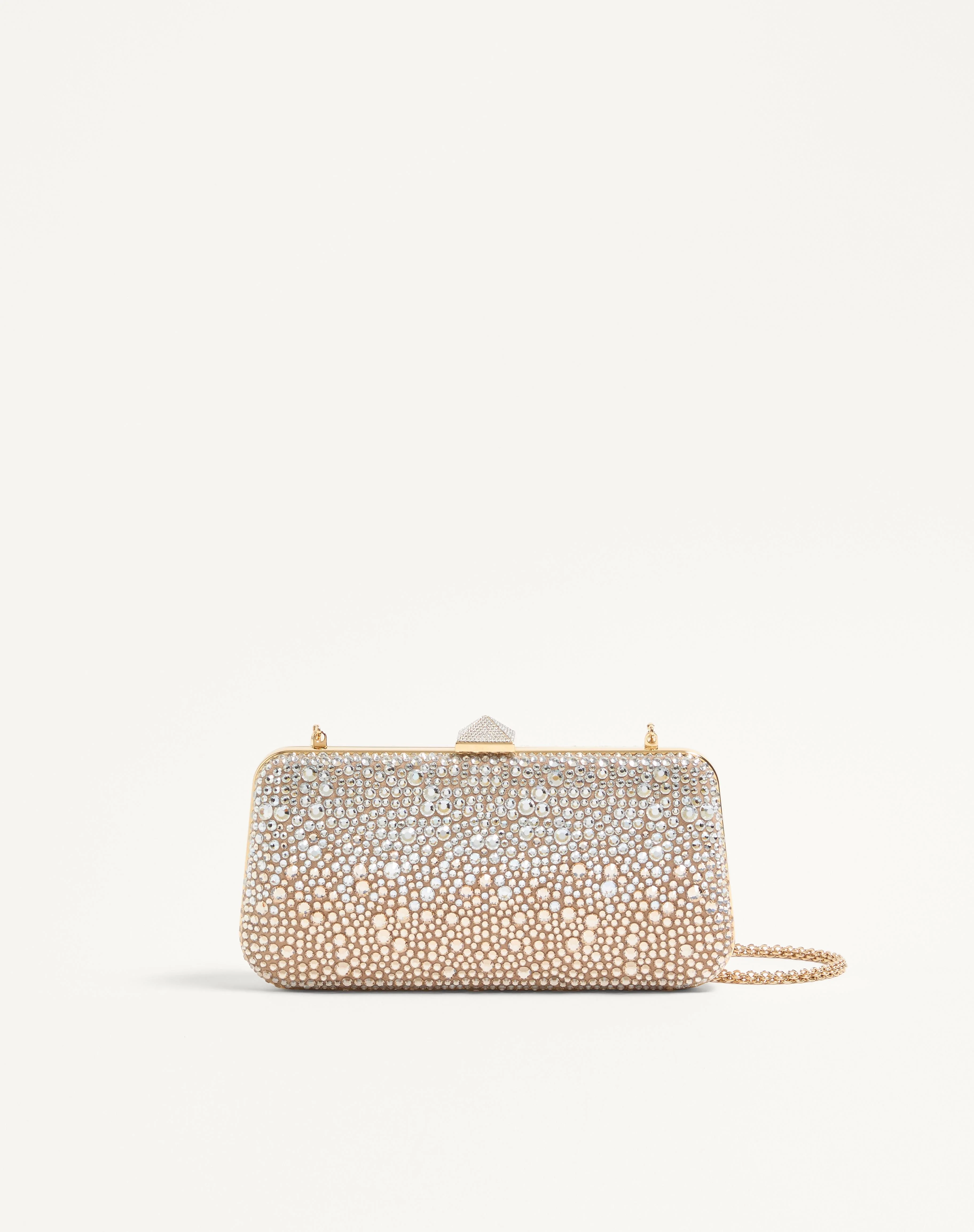 Valentino Garavani Carry Secrets minaudiere with rhinestone applique and rhinestone-covered stud fastening element. Gold-finish hardware - Nappa leather lining - Removable chain shoulder strap - Shoulder strap drop length: 51 cm / 20.1 in. - Dimensions: W21xH10xD4 cm / W8.3xH3.9xD1.6 in. - Made in Italy Product code: 7W2B0L01SNM_Z7W