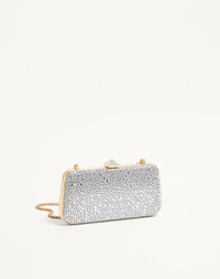 Valentino Garavani Carry Secrets minaudiere with rhinestone applique and rhinestone-covered stud fastening element. Gold-finish hardware - Nappa leather lining - Removable chain shoulder strap - Shoulder strap drop length: 51 cm / 20.1 in. - Dimensions: W21xH10xD4 cm / W8.3xH3.9xD1.6 in. - Made in Italy Product code: 7W2B0L01SNM_V3V