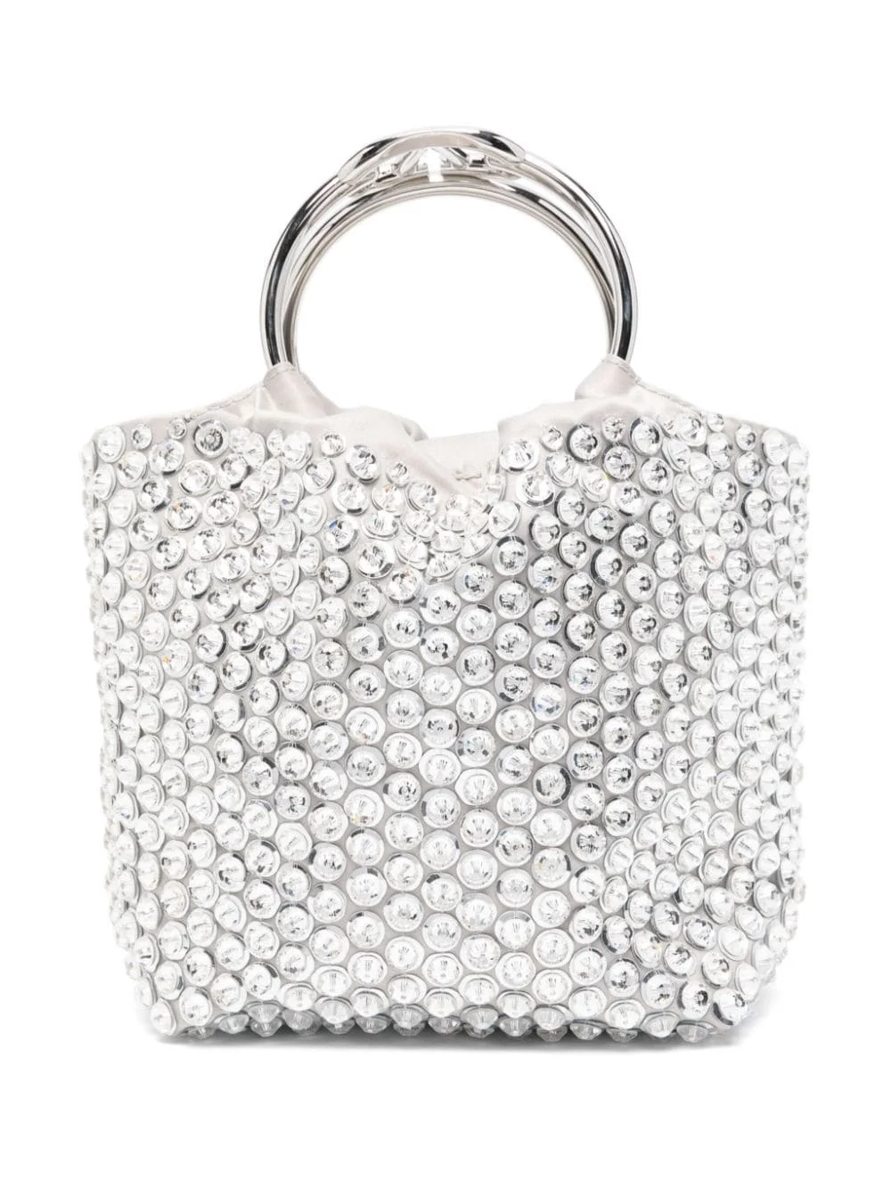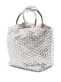 small Carry Secrets bucket bag Highlights - Light grey - Sequin embellishment - Vlogo signature - Two metallic top handles - Main compartment - Internal card slots - Internal logo stamp - Full lining - Concealed magnetic fastening - This piece comes complete with a protective dust bag. Made in Italy Composition Lining: Lambskin 100%, Viscose 72%, Silk 28% Outer: Metal 100%, Viscose 72%, Silk 28% SIZE & FIT Model measurements Height 5 ft 9 in(1.76 m) Bust/Chest 31.88 in(81 cm) Hips 35.43 in(90 cm) Waist 24.8 in(63 cm) Measurement DEPTH 5.11 in(13 cm) HANDLE 2.75 in(7 cm) HEIGHT 6.29 in(16 cm) WIDTH 7.87 in(20 cm)