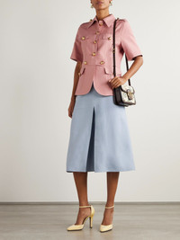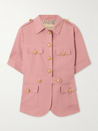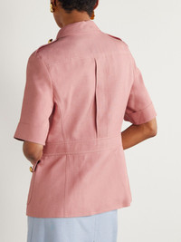Valentino Garavani's jacket is reminiscent of classic safari styles with traditional epaulettes and flap pockets. It’s been made in Italy from cashmere and cotton-blend canvas and adorned with logo-embossed buttons – wear yours with gold jewelry to coordinate. Size & Fit - Fits true to size, take your normal size - Designed for a slim fit - Lightweight, non-stretchy fabric - Model is 177cm/ 5'10" and is wearing an IT 40 Model measurements: - Bust: 86cm/ 34" - Waist: 65cm/ 25.5" - Hip: 90cm/ 35.5" Details & Care - Pink cashmere and cotton-blend canvas - Button fastenings through front - 75% cashmere, 25% cotton - Fully lined - Dry clean
