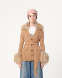 Cashmere Cardigan - Sheepskin inserts on neckline and cuffs - Front VLogo button closure - Cashmere (100% Cashmere) - Length 72 cm / 28.3 in. from the shoulders in an Italian size S - Sleeve length: 78 cm / 30.7 in. from the center back in an Italian size S - The model is 176 cm / 5'9" tall and wears an Italian size S - Made in Italy The look of the model is completed by Valentino Garavani Bowow Shoes. Product code: 6B3KA09C92B_954