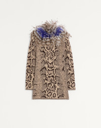 Cashmere animal print dress with feathers - Rear button closure - Cashmere (100% Cashmere) - Length: 83 cm / 32.7 in. from the shoulders in an Italian size S - The model is 176 cm / 5'9" tall and wears an Italian size S - Made in Italy The look of the model is completed by Valentino Garavani Drip Rose Shoes. Product code: 7B0KD14F9Q4_AN2