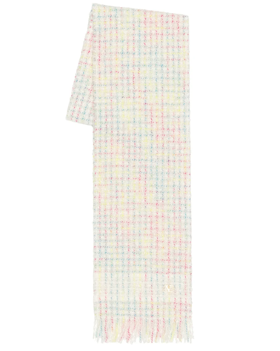 Details - 70% virgin wool, 19% viscose, 6% metallized fiber, 5% cashmere - Dry clean only - Lightweight knit fabric with fringe trim - Measures approx 183 cm L x 24 cm H - Made in Italy - Our Style No. VENT-WA294 - Manufacturer Style No. 8W2EN00CRRG