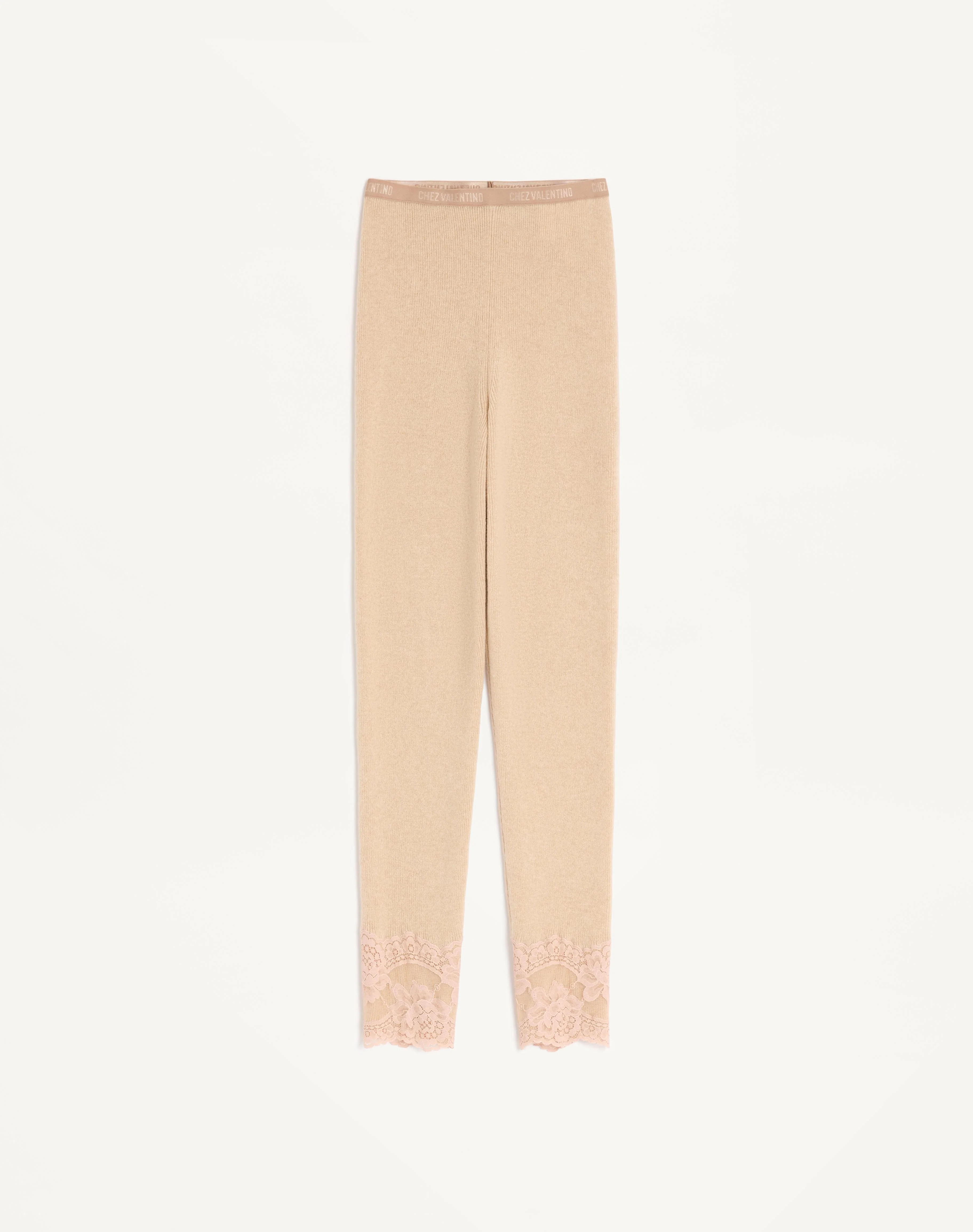 Cashmere leggings with lace details - Chez Valentino elastic detail - Cashmere (100% Cashmere) - Length: 95 cm / 37.4 in. from the waist in an Italian size S - The model is 176 cm / 5'9" tall and wears an Italian size S - Made in Italy Product code: 7B0KF02R9SH_DPT