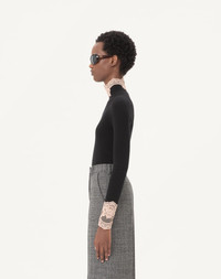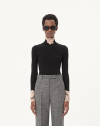 Cashmere sweater with lace details - High neck - VLogo detail - Rear zipper closure - Cashmere (100% Cashmere) - Length: 65 cm / 25.6 in. from the shoulders in an Italian size S - The model is 176 cm / 5'9" tall and wears an Italian size S - Made in Italy The look of the model is completed by a Valentino Garavani Panthea Bag and Valentino Garavani Panthea Shoes. Product code: 7B0KC68L9QT_DPU