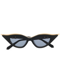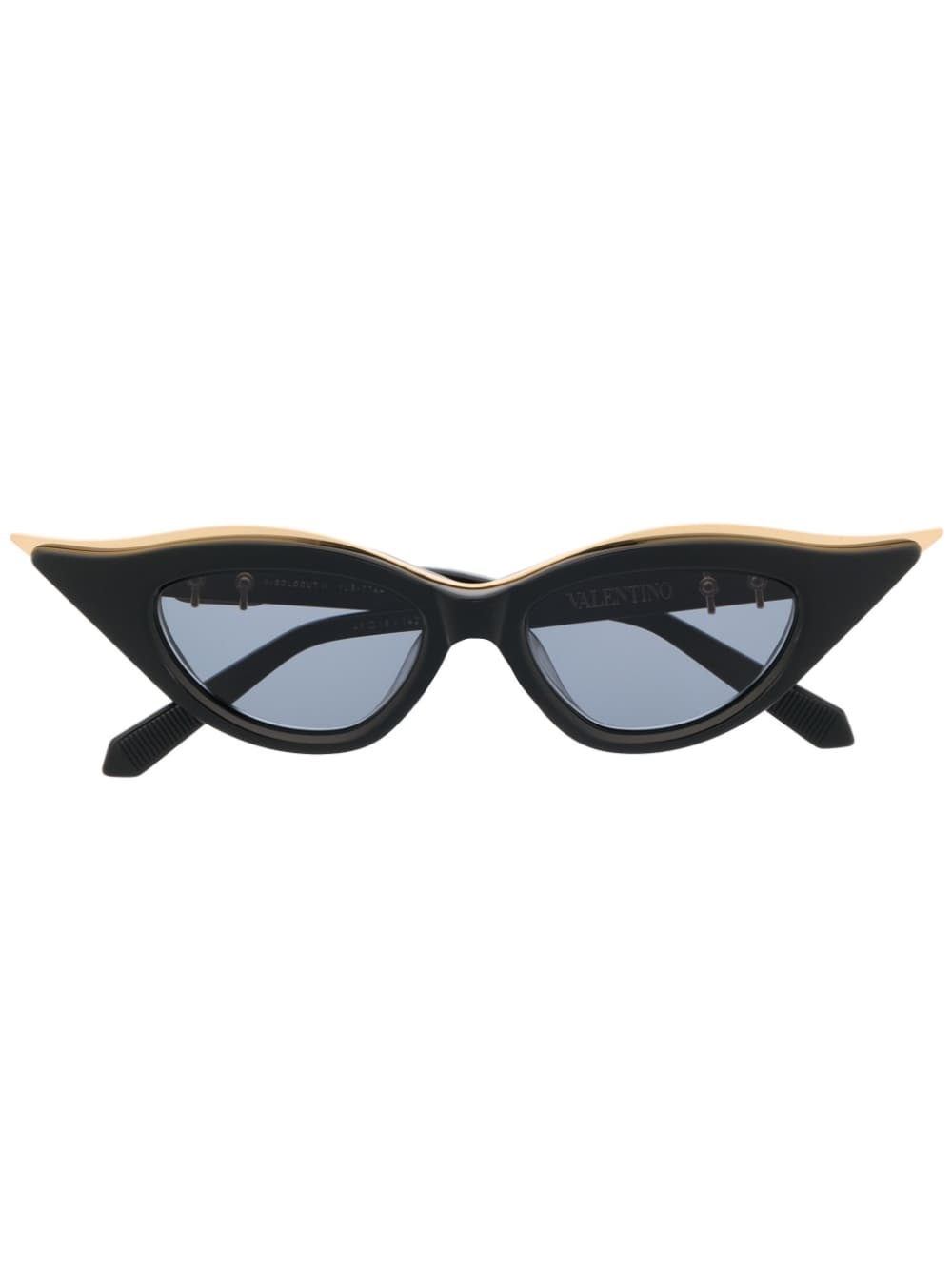 cat-eye tinted sunglasses Iconic to the brand is Valentino's VLogo Signature. Presented in gold-tone hardware at the arms of these sunglasses, an element of the house's history is showcased in a contemporary way. Highlights - Black - Acetate - Cat-eye frame - Tinted lenses - Logo plaque at the arm Imported Composition Acetate 100%, Metal 100% SIZE & FIT Measurement Arm Length 5.6 in(14 cm) Bridge Width 0.7 in(2 cm) Lens Diameter 1.9 in(5 cm) Total Width 6.7 in(17 cm)