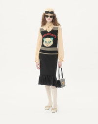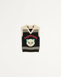 Le Chat de la Maison embroidered gilet - V-neckline Wool (100% Virgin Wool) - Length: 56 cm / 22 in. from the shoulders in an Italian size S - The model is 176 cm / 5'9" tall and wears an Italian size S - Made in Italy The look of the model is completed by a Valentino Garavani Nellcote Bag and Valentino Garavani Valet Du Roi Shoes. Product code: 7B3K400Q9KA_N78