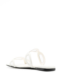 Chain 1967 flat slides Designed by Valentino Garavani, these flat sandals get their striking look from the emblematic Chain 1967 motif. Crafted from patent leather, the design is imagined in a timeless white hue. Highlights - White - Calf leather - Patent finish - Double-strap design - Branded insole - Slip-on style - Open toe - Flat sole Made in Italy Composition Outer: Calf Leather 100%, Rubber 100% Lining: Calf Leather 100% Sole: Calf Leather 100% SIZE & FIT Measurement Sole height 0.59 in(1.5 cm)