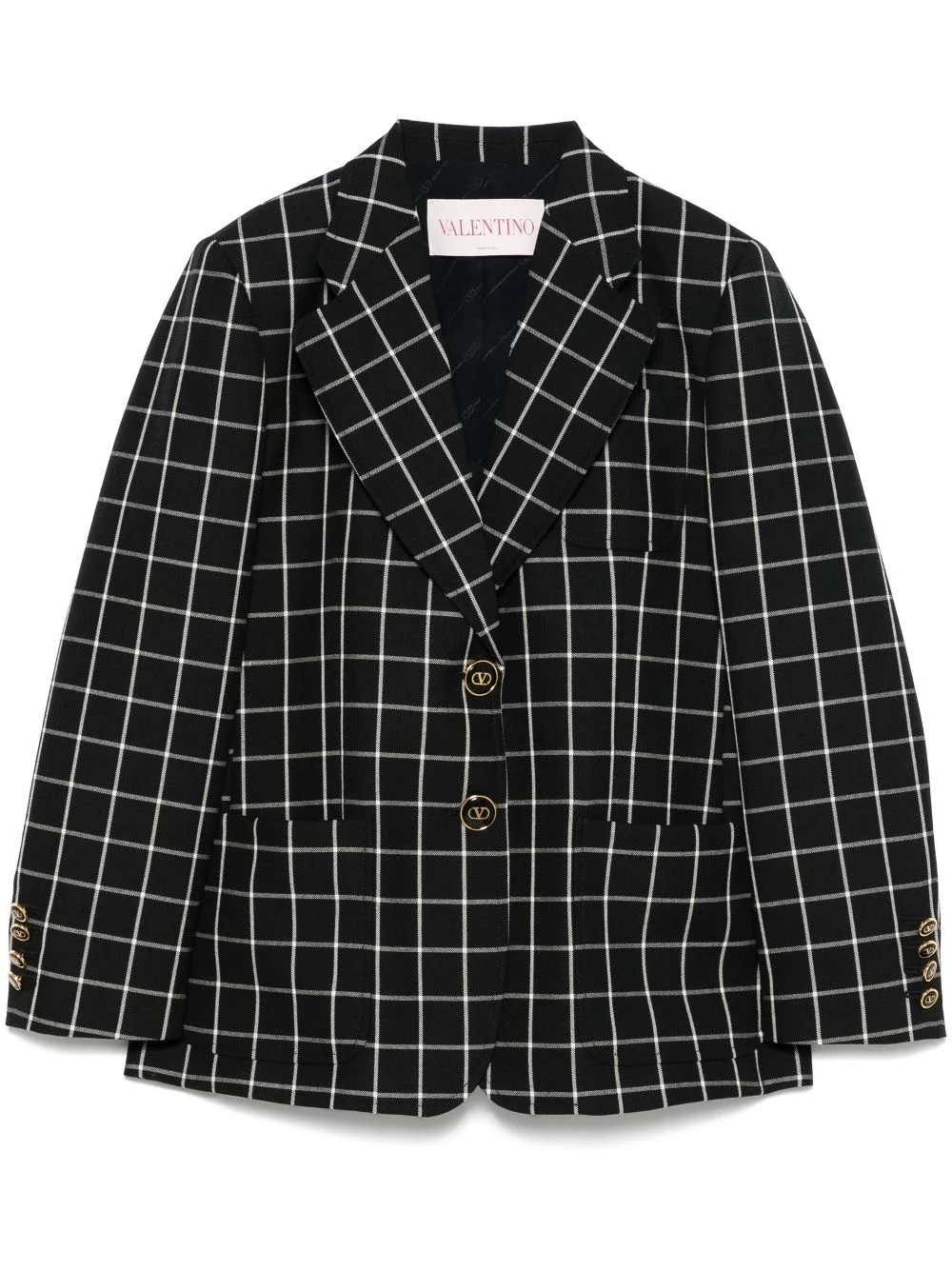 grid-pattern blazer Highlights - Black - Front button fastening - Three front patch pockets - Buttoned cuffs - English rear vents Made in Italy Composition Outer: Virgin Wool 100%, Wool 68%, Viscose 32% Lining: Viscose 100%, Acetate 75%, Silk 25% SIZE & FIT Model measurements Height 5 ft 10 in(1.79 m) Bust/Chest 31.88 in(81 cm) Hips 35.43 in(90 cm) Waist 24.4 in(62 cm) FittingInformation Designed for a slim fit that sits just away from the body offering a close yet comfortable fit The internal shoulder pads offer a structured shape Made from a midweight non-stretch fabric