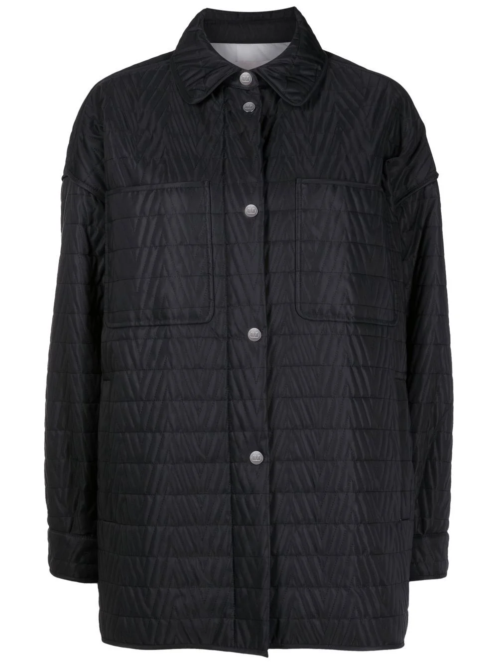 chevron-quilt jacket Highlights - Valentino ready to wear - Black - Chevron quilting - Front press-stud and zip fastening - Rounded collar - Two chest patch pockets - Two side welt pockets - Press-stud fastening cuffs - Long sleeves - Straight hem Made in Italy Composition Lining: Polyester 100% Outer: Polyamide 100% SIZE & FIT Model measurements Height 5 ft 10 in(1.77 m) Bust/Chest 32.28 in(82 cm) Hips 36.61 in(93 cm) Waist 25.19 in(64 cm) FittingInformation This piece fits true to size. We recommend you get your regular size Cut for a slim fit Made with a mid-weight non-stretch fabric Washing instructions Read Manufacturer Guidelines
