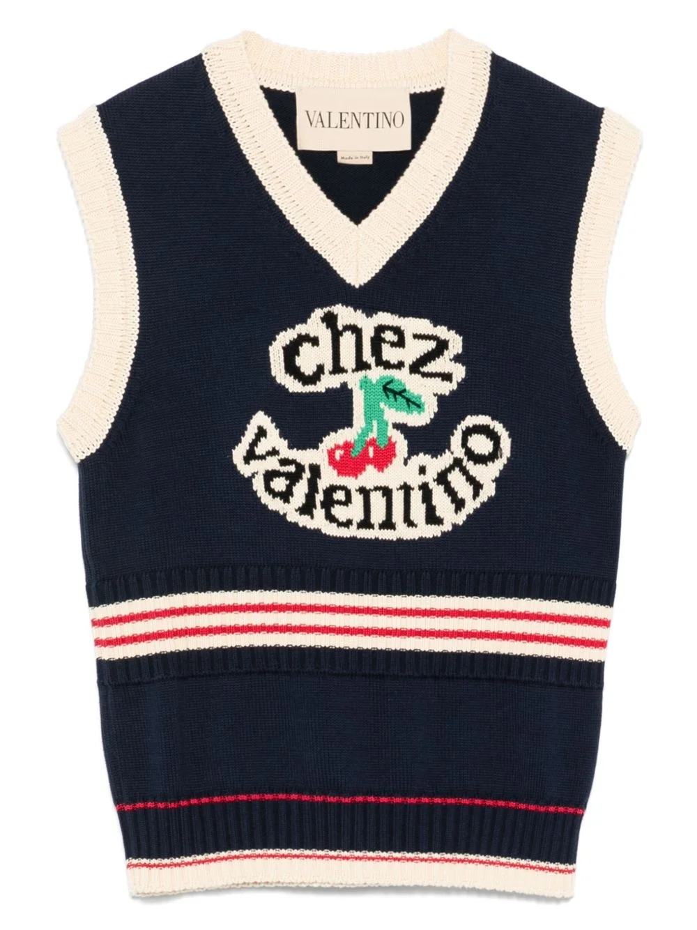 Chez vest Highlights - Midnight blue - V-neck - Sleeveless - Ribbed cuffs and hem Made in Italy Composition Cotton 100% SIZE & FIT Model measurements Height 5 ft 10 in(1.78 m) Bust/Chest 33.85 in(86 cm) Hips 36.61 in(93 cm) Waist 26.77 in(68 cm) FittingInformation Designed for a slim fit that sits just away from the body offering a close yet comfortable fit Made with a lightweight knit, this piece offers some stretch