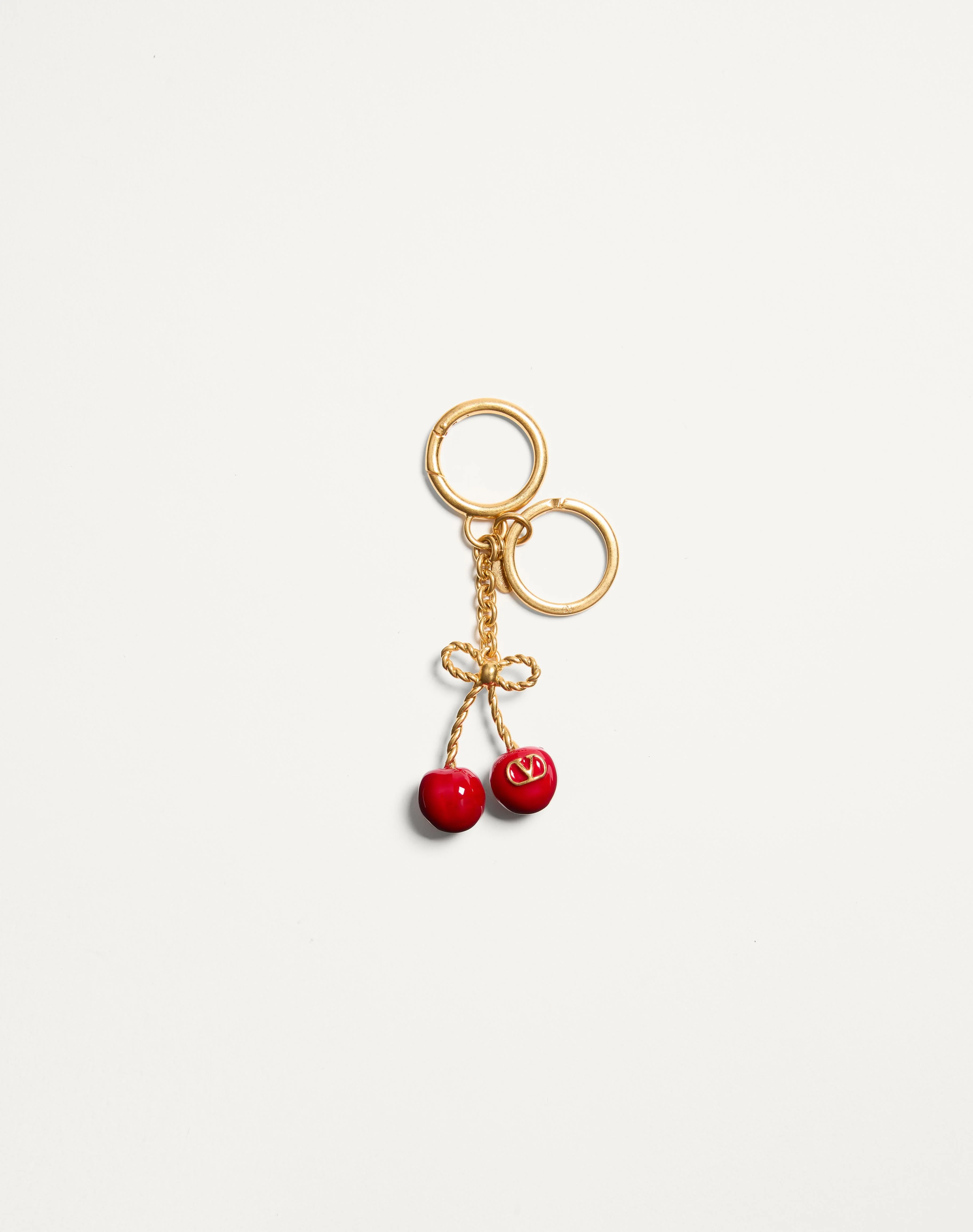 Chez Valentino bag charm and key ring in metal and enamel. - Metal in antique brass finish - Enamelled cherries with VLogo Signature metal detail - Snap hook and key ring - Dimensions: W4xH13 cm / W1.6xH5.1 in. - Made in Italy This product is not a toy but an item intended for adults, keep out of the reach of children. Product code: 8W2P0AU3MJP_03Y