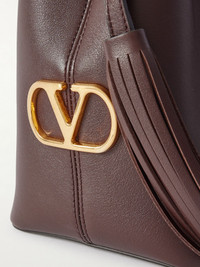 From its compact bucket shape to the thick adjustable strap, Valentino Garavani's 'So Seau' shoulder bag is built to go anywhere. It's crafted from supple leather, lined in suede and finished with swishy tassels and iconic gold-tone 'VLogo' hardware. Inside there's enough room for your wallet, diary and sunglasses. Details & Care - Dark-brown leather (Calf) - Adjustable shoulder strap - Suede lining - Drawstring top