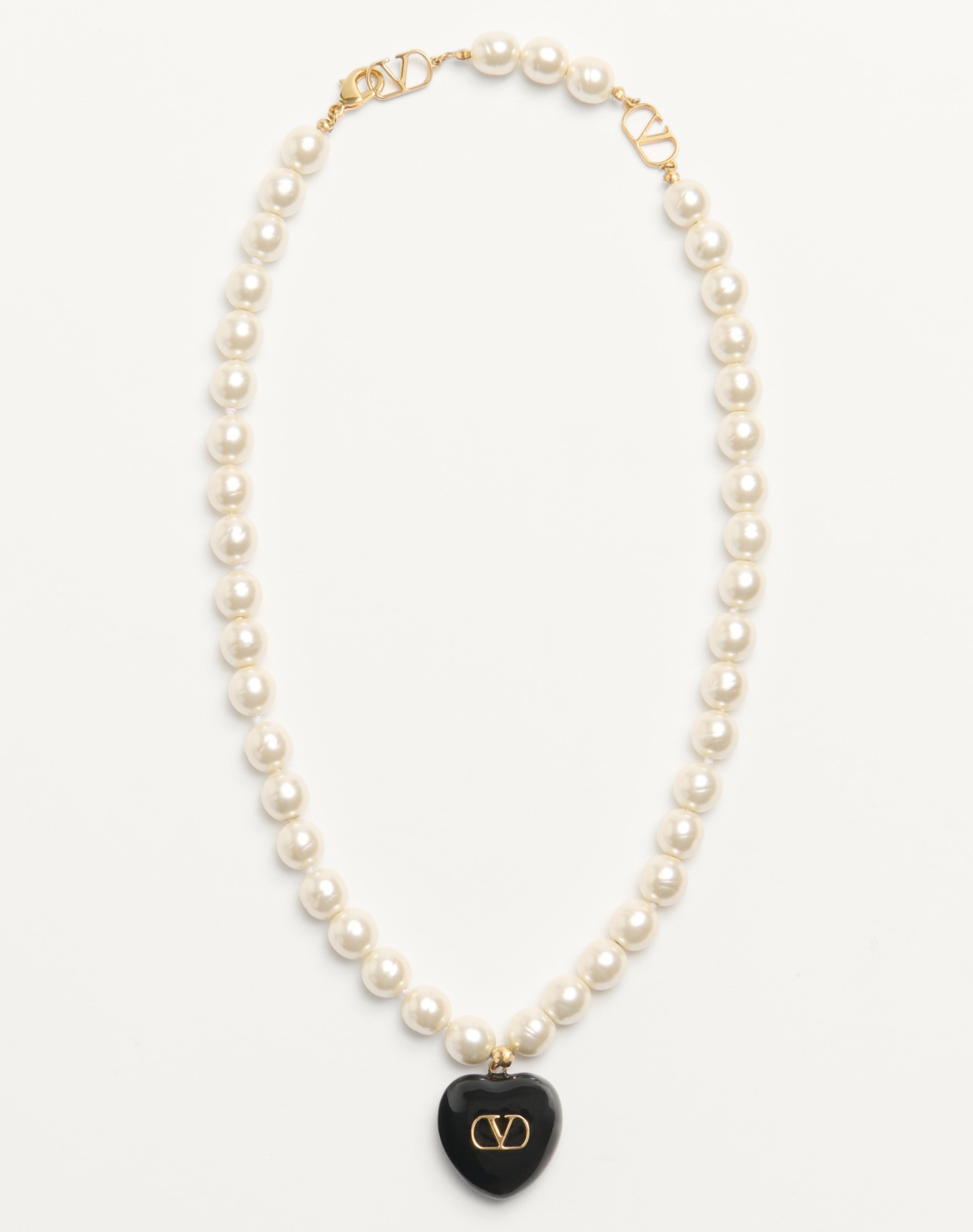 Coeur Royal Necklace in Metal, Enamel and Pearls - Gold-tone finish - Round enamel heart pendant with metal VLogo Signature detail - Baroque glass pearls - Heart size: 2.5x2.5 cm / 1.0x1.0 in. - Pearl diameter: 8 mm / 0.3 in. - Adjustable length from 48 to 50 cm / 18.9 to 19.7 in. - Snap hook closure - Made in Italy Product code: 6W2J0Y70LTD_QYL