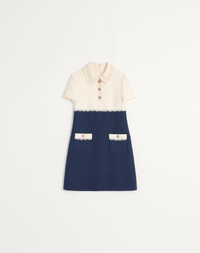 Crepe Couture dress with contrasting skirt and beaded embroidery - Lace collar - Jewel button detail - Pocket detail - Back zip closure - Crepe Couture (65% Virgin Wool, 35% Silk) - Habotai lining (100% Silk) - Length 90 cm from shoulders for size 40 IT - The model is 176 cm tall and wears a size 40 IT - Made in Italy Product code: 6B3VAER01CF_R2W