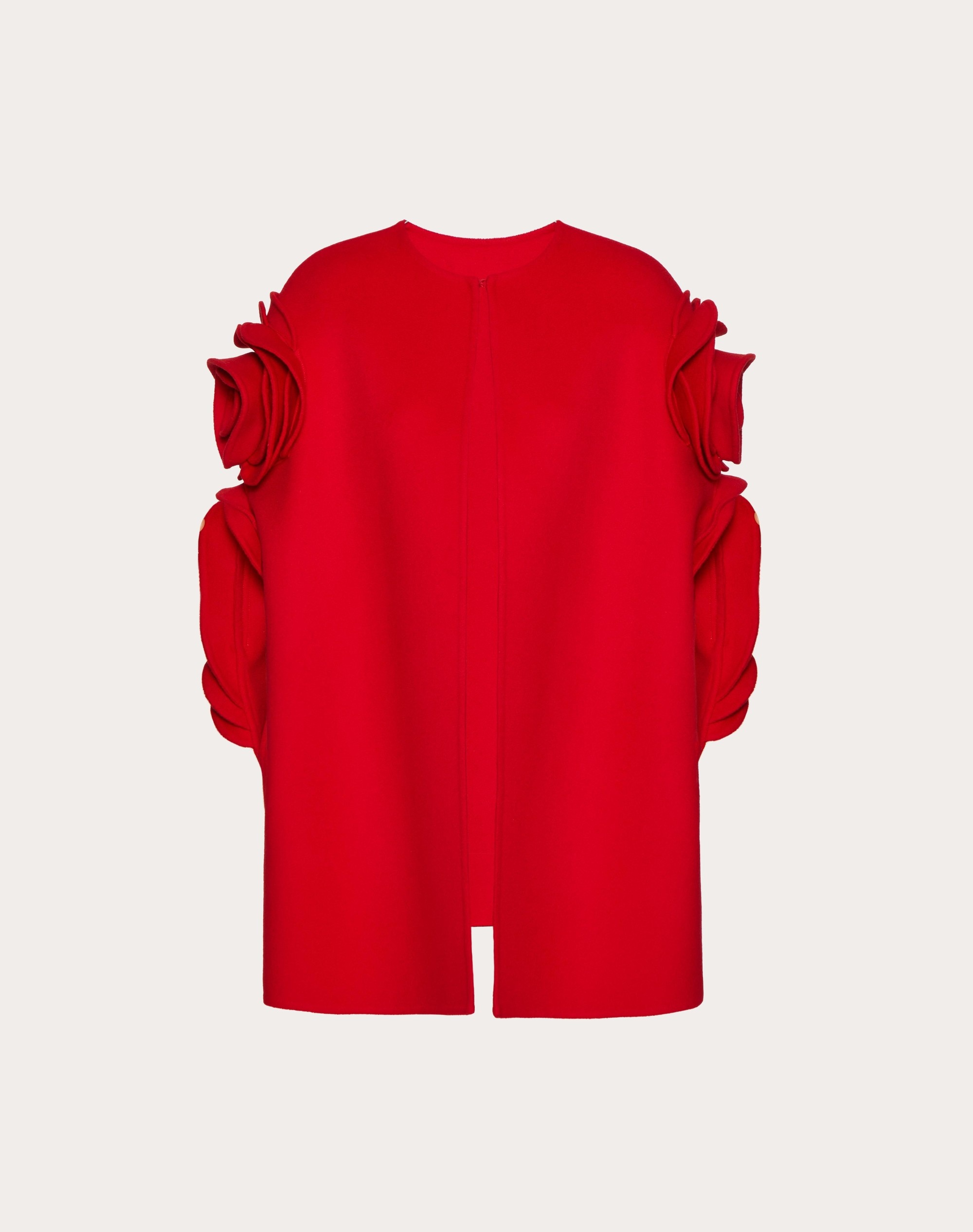 Compact Drap Cape - Rose appliqué detail - Compact Drap (90% Virgin Wool, 10% Cashmere) - Unlined - Length: 80 cm / 31.5 in. from the shoulders in an Italian size 40 - The model is 176 cm / 5'9" tall and wears an Italian size 40 - Made in Italy The look of the model is completed by a Valentino Garavani VLOGO MOON Bag and Valentino Garavani VLogo Signature Shoes. Product code: 4B3CG4106JA_157 Compact Drap Cape - Rose appliqué detail - Compact Drap (90% Virgin Wool, 10% Cashmere) - Unlined - Length: 80 cm / 31.5 in. from the shoulders in an Italian size 40 - The model is 176 cm / 5'9" tall and wears an Italian size 40 - Made in Italy The look of the model is completed by a Valentino Garavani VLOGO MOON Bag and Valentino Garavani VLogo Signature Shoes. Product code: 4B3CG4106JA_157
