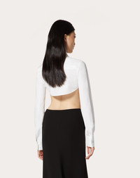Valentino Compact Popeline shirt - Cropped fit - Concealed front button closure - Compact Popeline (100% Cotton) - Unlined - Length: 31 cm / 12.2 in. from the shoulders in an Italian size 40 - Sleeve length: 83 cm / 32.7 in. from the center back in an Italian size 40 - The model is 176 cm / 5'9" tall and wears an Italian size 40 - Made in Italy The look of the model is completed by a Valentino Garavani Rockstud Bag and Valentino Garavani Rockstud Shoes. Product code: 3B0AB5N55DN_001 Valentino Compact Popeline shirt - Cropped fit - Concealed front button closure - Compact Popeline (100% Cotton) - Unlined - Length: 31 cm / 12.2 in. from the shoulders in an Italian size 40 - Sleeve length: 83 cm / 32.7 in. from the center back in an Italian size 40 - The model is 176 cm / 5'9" tall and wears an Italian size 40 - Made in Italy The look of the model is completed by a Valentino Garavani Rockstud Bag and Valentino Garavani Rockstud Shoes. Product code: 3B0AB5N55DN_001