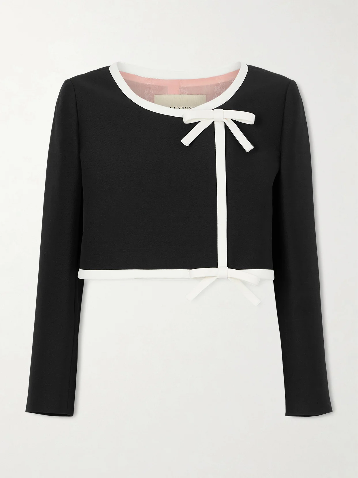 Cropped Bow-embellished Wool And Silk-blend Crepe Jacket