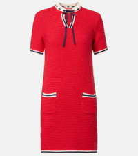 This minidress from Valentino is made from a cotton and wool fabric and cut to a polished silhouette. The short-sleeve style is finished with striped detailing and self-ties at the neckline. Product Details - Material: 60% cotton, 40% wool - Care instructions: dry clean - Made in Italy - Designer color name: Paris/Avorio - Item color: red, beige, blue - Pockets: patch pockets - Trim: 100% cotton - Item number: P01059835 Size & Fit - True to size - Straight fit - Stretchy fabric - Height of model is 175cm-69" and wears a size XS