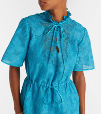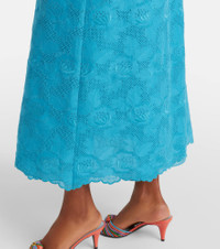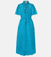Valentino has become a symbol of crafting excellence, creativity, and uniqueness. Made from cotton lace, this maxi dress features lustrous silk satin trims and adjustable drawstrings at the collar and waist. Product Details - Material: 100% cotton - Care instructions: dry clean - Made in Italy - Color: blue - Designer color name: Light Blue - Lining: 100% cotton - Material II: 100% silk - Embroidery: 100% cotton - Details: 100% polyester - Drawstring collar - Drawstring waist - Detachable lining - Item number: P01108277 Size & Fit - True to size - Loose fit, drawstring waist - Non-stretchy fabric - The model seen in the picture is 178cm-5'10" and wearing a size IT 40