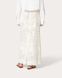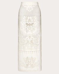 Midi skirt in Peonies Blanket cotton lace. - Concealed rear zipper and hook-and-eye fastening - Peonies Blanket (80% Cotton, 20% Polyamide) - Detachable slip in Muslin (100% Cotton) - Length from shoulders: 140 cm / 55.1 in. for Italian size 40 - The model is 176 cm / 5’7” tall and is wearing an Italian size 40 - Made in Italy Product Code BRA8L16W3_DC4