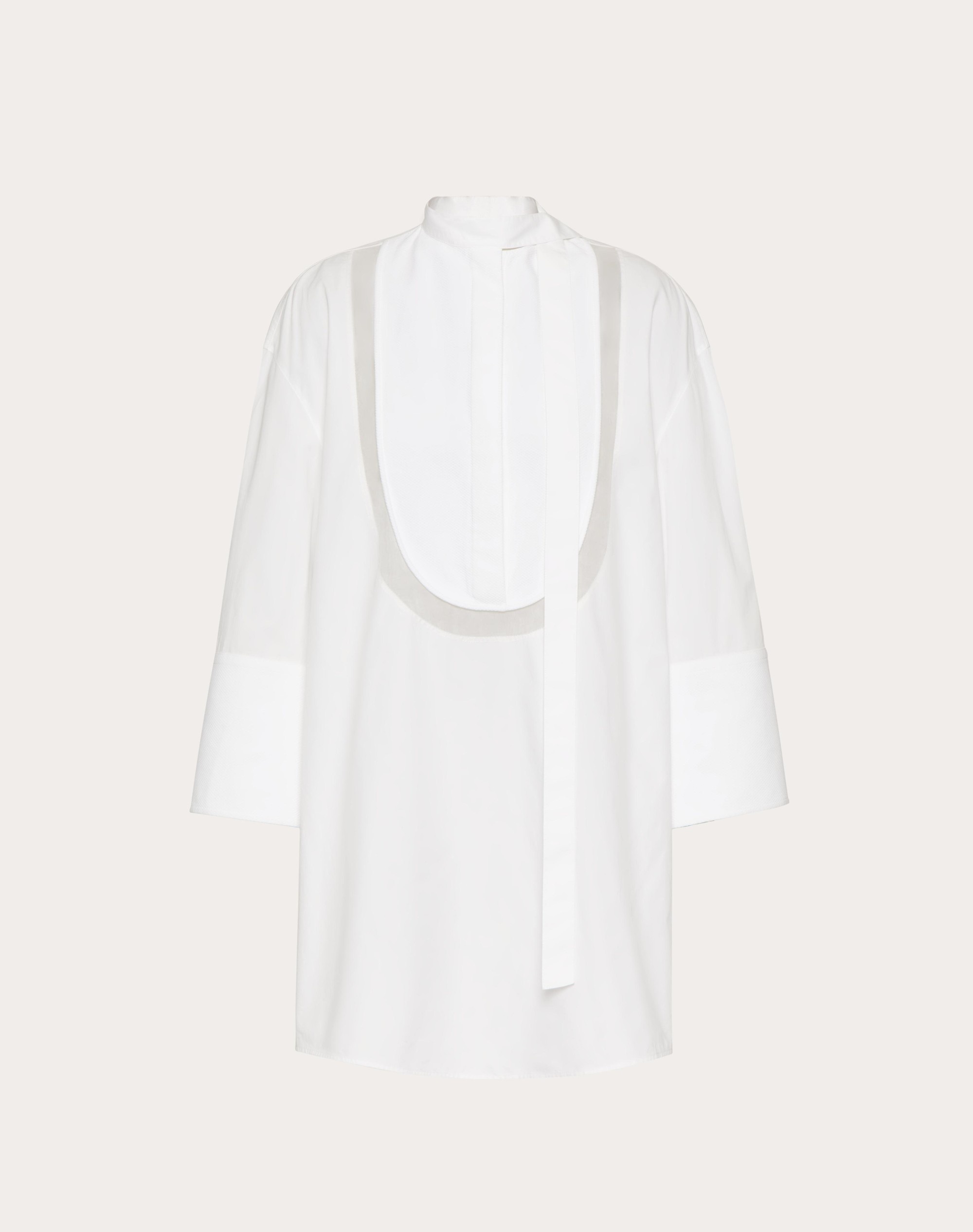 Valentino Top in Cotton Popeline - Scarf detail at neckline - Contrasting plastron detail with Organza inserts (100% Silk) - Side slit detail - Front button closure - Cotton Popeline (100% Cotton) - Unlined - Length: 80 cm / 31.5 in. from shoulders in Italian size 40 - Sleeve length: 71 cm / 27.8 in. from the centre back in Italian size 40 - The model is 176 cm / 5'9" tall and wears an Italian size 40 - Made in Italy The look of the model is completed by Valentino Garavani VLogo Chain Shoes. Product code: 1B3AE7855A6_001 Valentino Top in Cotton Popeline - Scarf detail at neckline - Contrasting plastron detail with Organza inserts (100% Silk) - Side slit detail - Front button closure - Cotton Popeline (100% Cotton) - Unlined - Length: 80 cm / 31.5 in. from shoulders in Italian size 40 - Sleeve length: 71 cm / 27.8 in. from the centre back in Italian size 40 - The model is 176 cm / 5'9" tall and wears an Italian size 40 - Made in Italy The look of the model is completed by Valentino Garavani VLogo Chain Shoes. Product code: 1B3AE7855A6_001