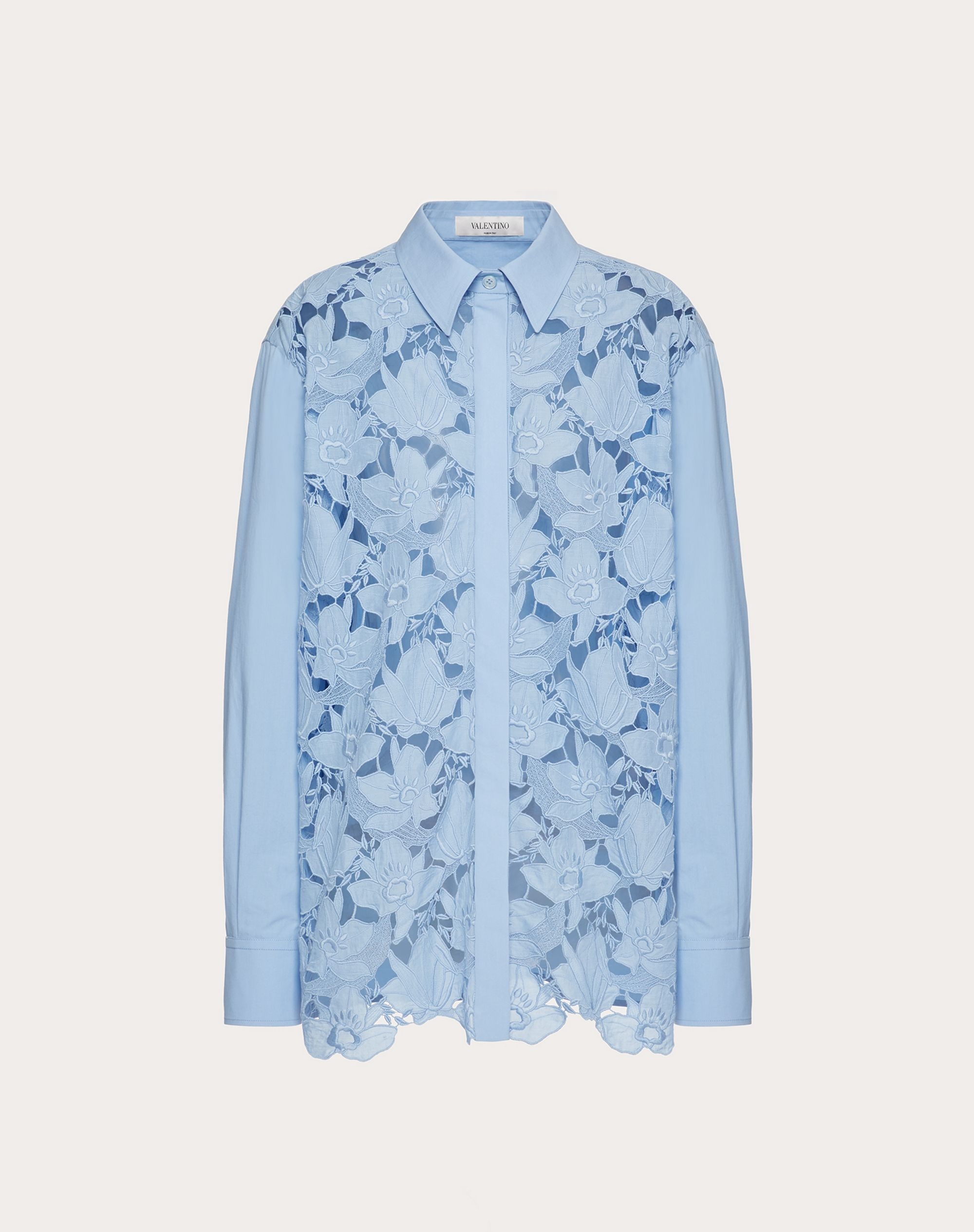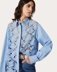 Cotton poplin shirt. - Front panel detail in Carving Mussoline - Front fastening with small buttons - Cotton poplin (100% Cotton) - Unlined - Length from shoulders: 75 cm / 29.5 in. for Italian size 40 - The model is 176 cm / 5’9” tall and wears an Italian size 40 - Made in Italy Product Code: WB3AB2L05A6W02