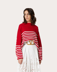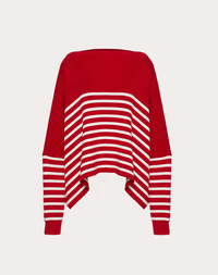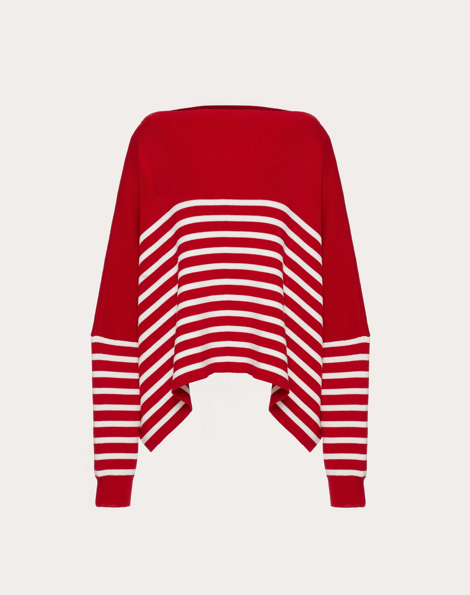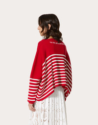 Striped cotton sweater. - Oversize fit - Jacquard Valentino logo on back - Cotton (100% Cotton) - Unlined - Length from shoulder: 58 cm /22.8 in. in the front/75 cm / 29.5 in. in the back for Italian size S - The model is 5’9” tall and wears an Italian size S - Made in Italy Product Code: WB3KC24F6H0RA0