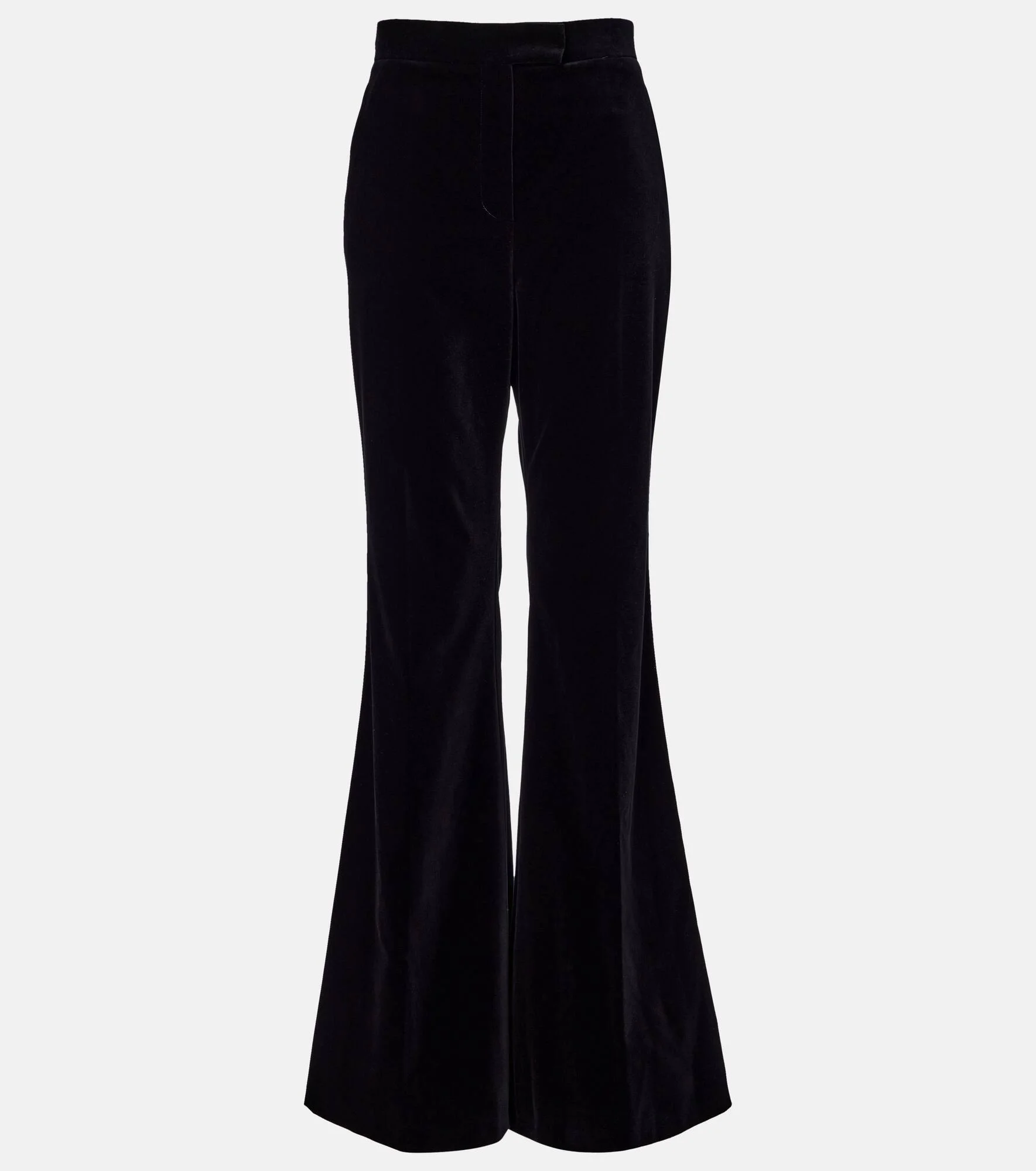 These pants from Valentino are an elevated option for your day-to-night edit. The black pair is made from cotton velvet that's soft to the touch and feature a timeless wide-leg silhouette. Product Details - Material: 100% cotton - Care instructions: dry clean - Made in Italy - Color: black - Designer color name: Nero - Item color: black - Pocket lining: 100% cotton - Closure: zipper fly, button and hook fastenings - Pockets: side slit pockets, back pockets - Belt loops - Item number: P01108224 Size & Fit - True to size - Non-stretchy fabric - Flared - High-waisted - The model seen in the picture is 178cm-5'10" and wearing a size IT 40