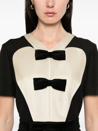 bow-detail midi dress Highlights - Black - Concealed rear hook and zip fastening - Detachable waist belt - Central rear vent - Dart detailing Made in Italy Composition Outer: Virgin Wool 65%, Cotton 58%, Acetate 42%, Silk 35% Lining: Viscose 100%, Acetate 74%, Silk 16% SIZE & FIT Model measurements Height 5 ft 10 in(1.78 m) Bust/Chest 33.46 in(85 cm) Hips 36.22 in(92 cm) Waist 23.22 in(59 cm) FittingInformation Designed for a relaxed fit, this piece allows for comfort and movement when worn Made from a lightweight non-stretch fabric Washing instructions Dry Clean Only