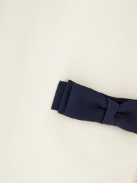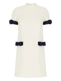 bow-detail short-sleeve mini dress Highlights - Valentino ready to wear - Off white - Short sleeves - Navy blue bows - Crew neck Made in Italy Composition Lining: Silk 100% Outer: Wool 65%, Silk 35% Washing instructions Read Manufacturer Guidelines