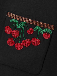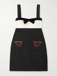 The beaded cherries on the pockets of Valentino Garavani's dress are so sweet and playful. Made from wool and silk-blend crepe, it's paneled with contrasting satin at the bodice and adorned with a bow along the velvet-trimmed neckline. Wear yours with ballet flats and a red lip. Large to size. See Size & Fit notes. Size & Fit - Fits large to size, take one size smaller than normal - Designed to be fitted at the bust, loose at the waist and hip - Mid-weight, non-stretchy fabric - Model is 177cm/ 5'10" and is wearing an IT 38 Model measurements: - Bust: 85cm/ 33.5" - Waist: 65cm/ 25.5" - Hip: 91cm/ 36" Details & Care - Black wool and silk-blend crepe and velvet, ivory and black satin - Concealed hook and zip fastening at back - 65% wool, 35% silk; trim1: 100% viscose; trim2: 52% viscose, 48% silk; lining: 100% silk - Fully lined - Dry clean